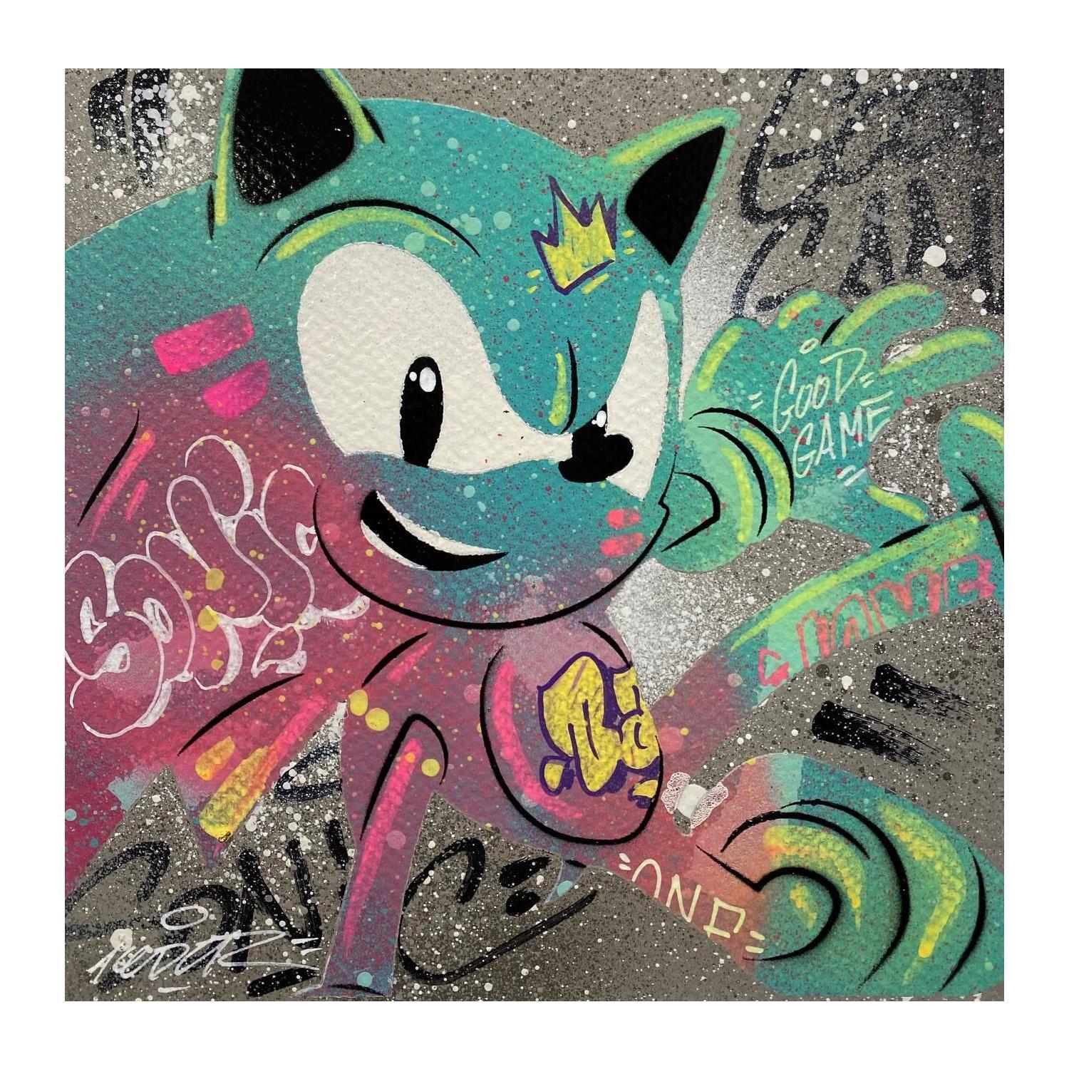 Cette oeuvre d'art contemporain unique et originale "Sonic" a été réalisée par l'artiste contemporain Kedarone.