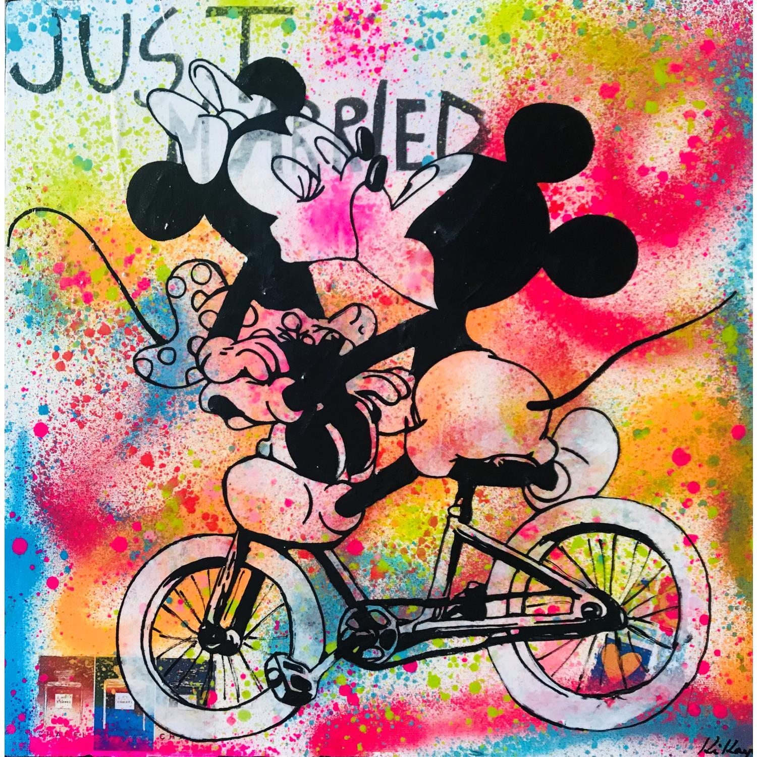 Cette oeuvre d'art contemporain unique et originale "Just married" a été réalisée par l'artiste contemporain Kikayou.