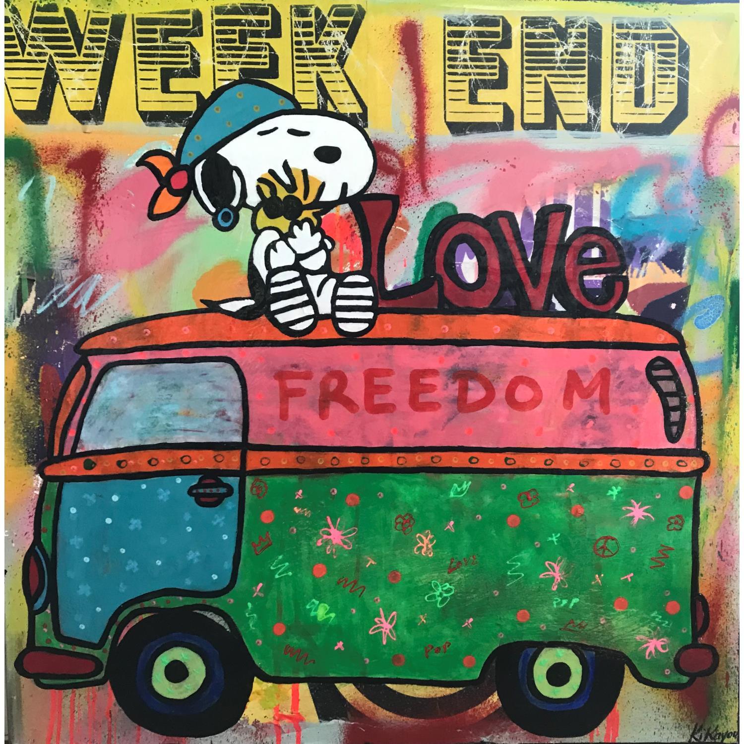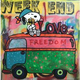 Cette oeuvre d'art contemporain unique et originale "Snoopy van love" a été réalisée par l'artiste contemporain Kikayou.