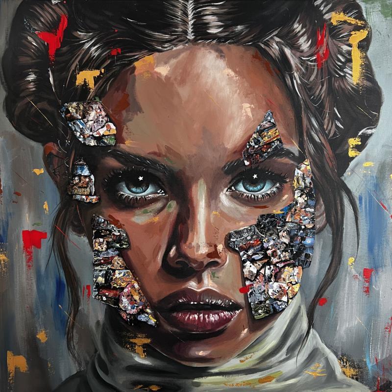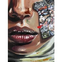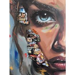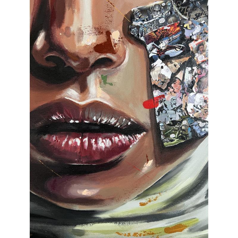L'artiste a utilisé les techniques Acrylique, Collage pour créer cette peinture grand format sur Toile de style Pop-art sur le thème Icones Pop.