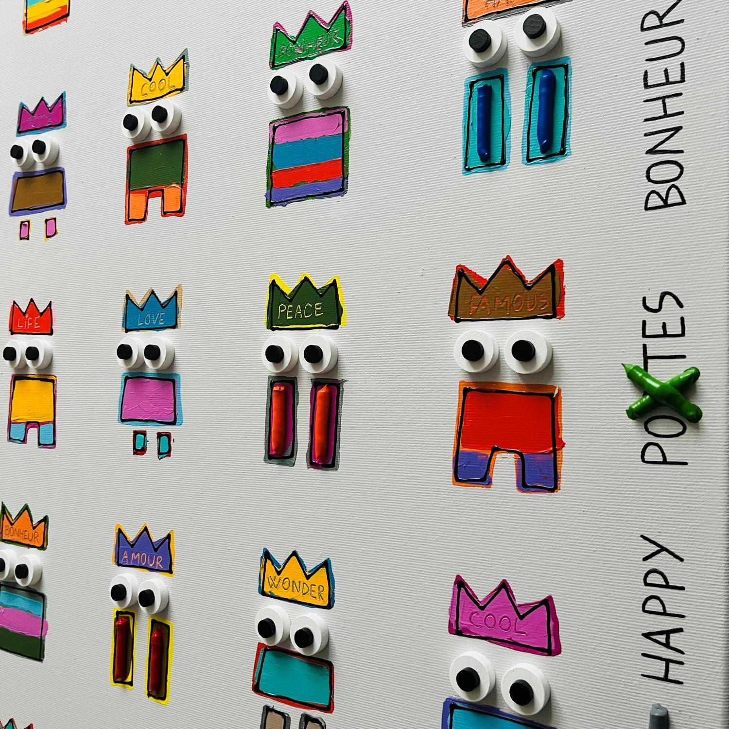 Cette oeuvre d'art contemporain unique et originale "HAPPY POTES BONHEUR" a été réalisée par l'artiste contemporain Mam.