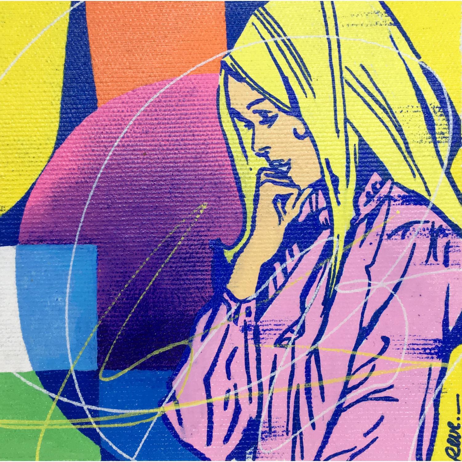 L'artiste a utilisé les techniques Acrylique, Posca pour créer cette peinture petit format sur Toile de style Pop-art sur le thème Icones Pop.