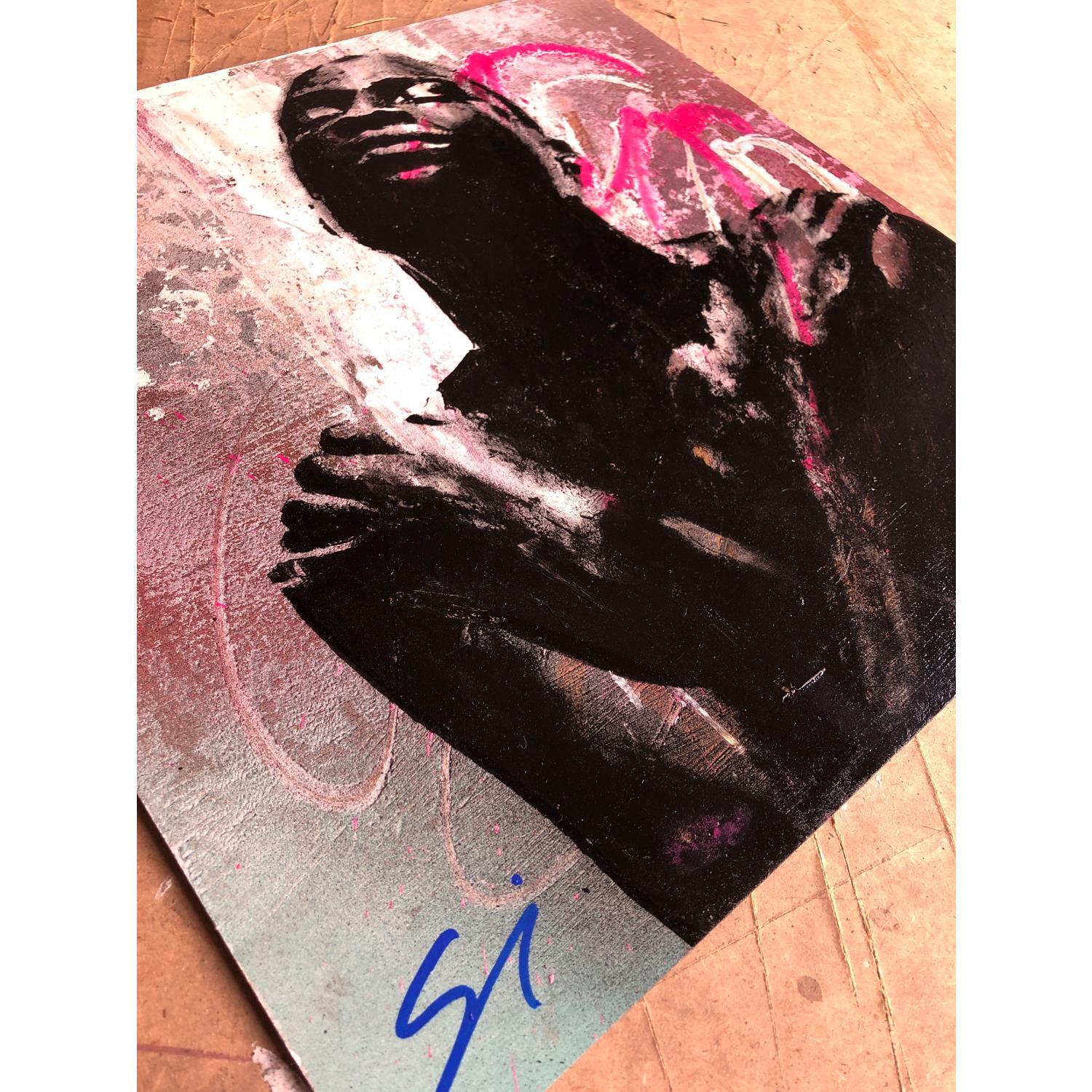 L'artiste a utilisé les techniques Acrylique, Graffiti pour créer cette peinture petit format sur Carton toilé de style Pop-art sur les thèmes Icones Pop, Mode.