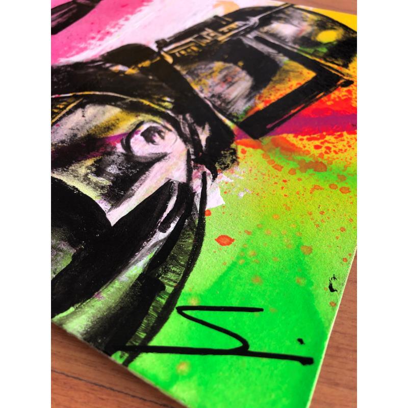 L'artiste a utilisé les techniques Acrylique, Graffiti pour créer cette peinture petit format sur Carton de style Pop-art sur le thème Icones Pop.