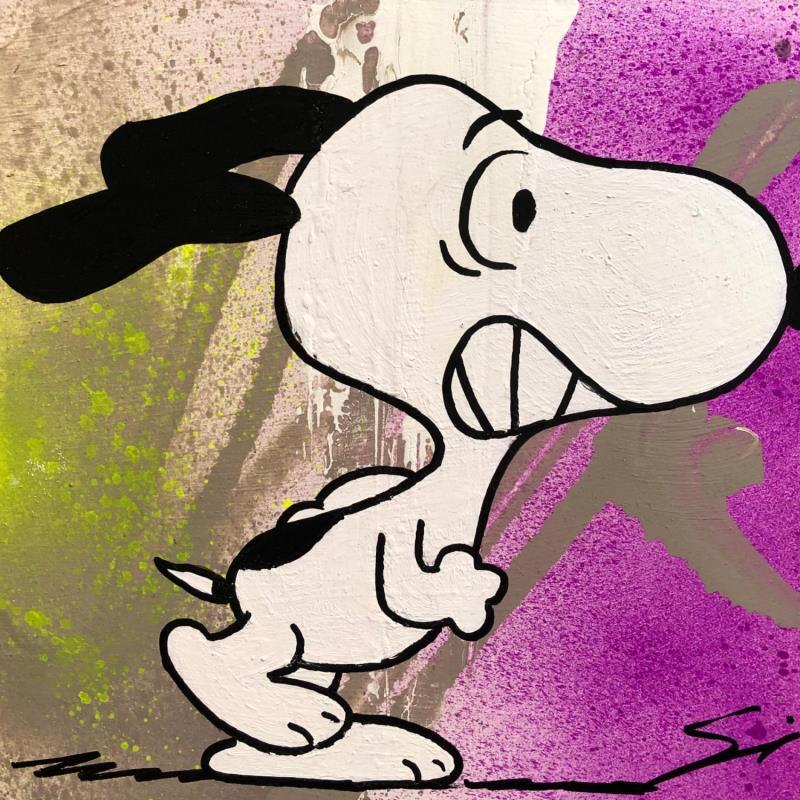 Cette oeuvre d'art contemporain unique et originale "RUN SNOOPY" a été réalisée par l'artiste contemporain Mestres Sergi.