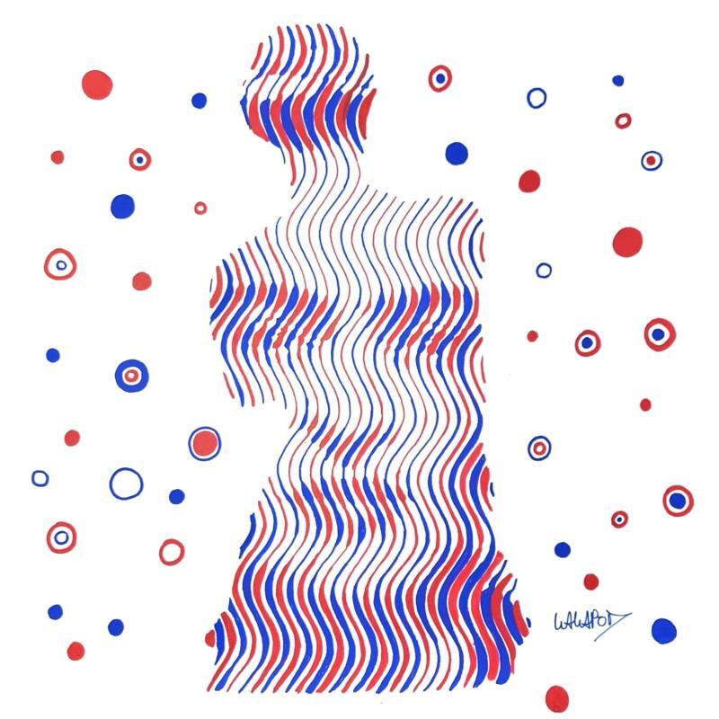 Cette oeuvre d'art contemporain unique et originale "Vénus de Frida bleu rouge " a été réalisée par l'artiste contemporain Wawapod.