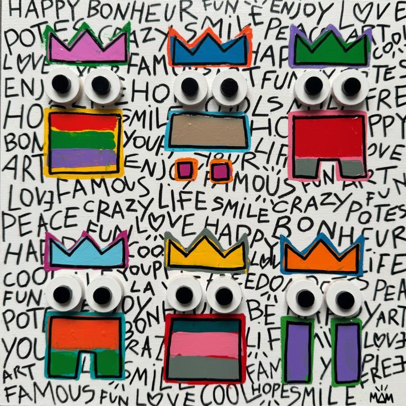Cette oeuvre d'art contemporain unique et originale "HAPPY POTES" a été réalisée par l'artiste contemporain Mam. L'artiste a utilisé la technique Acrylique pour créer cette peinture petit format sur Toile de style Pop-art.