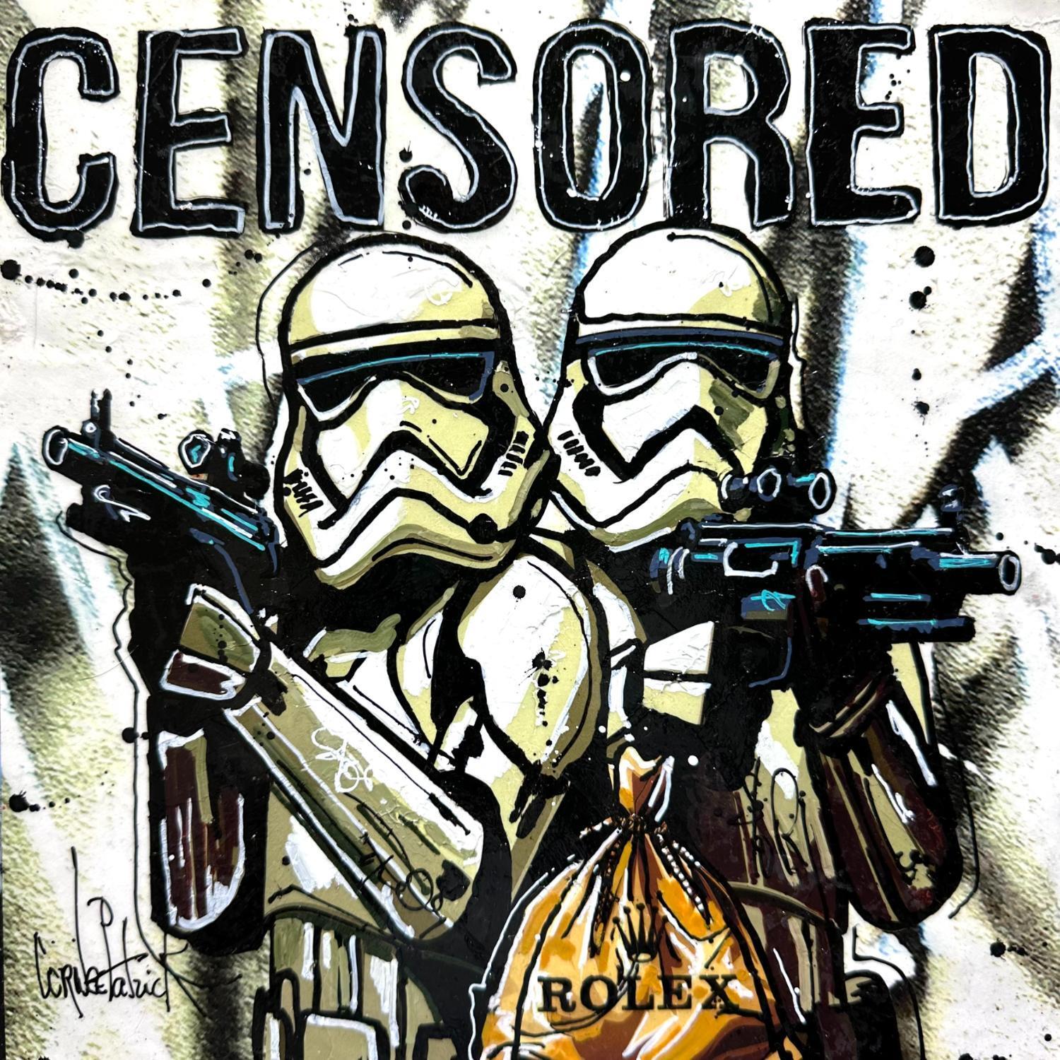 Cette oeuvre d'art contemporain unique et originale "Stormtroopers gang" a été réalisée par l'artiste contemporain Cornée Patrick.