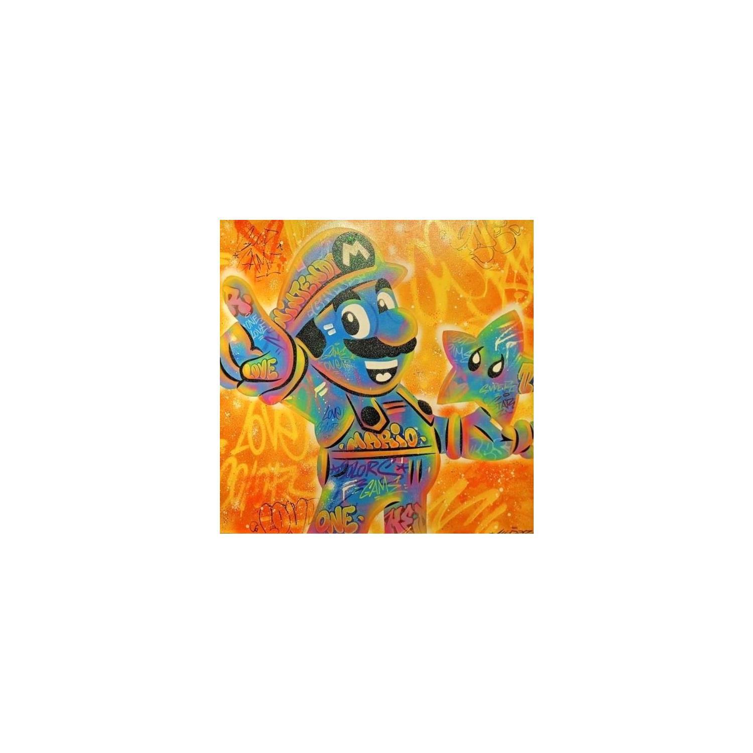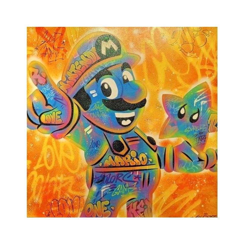 L'artiste a utilisé les techniques Graffiti, Posca pour créer cette peinture grand format sur Toile de style Pop-art sur le thème Icones Pop.