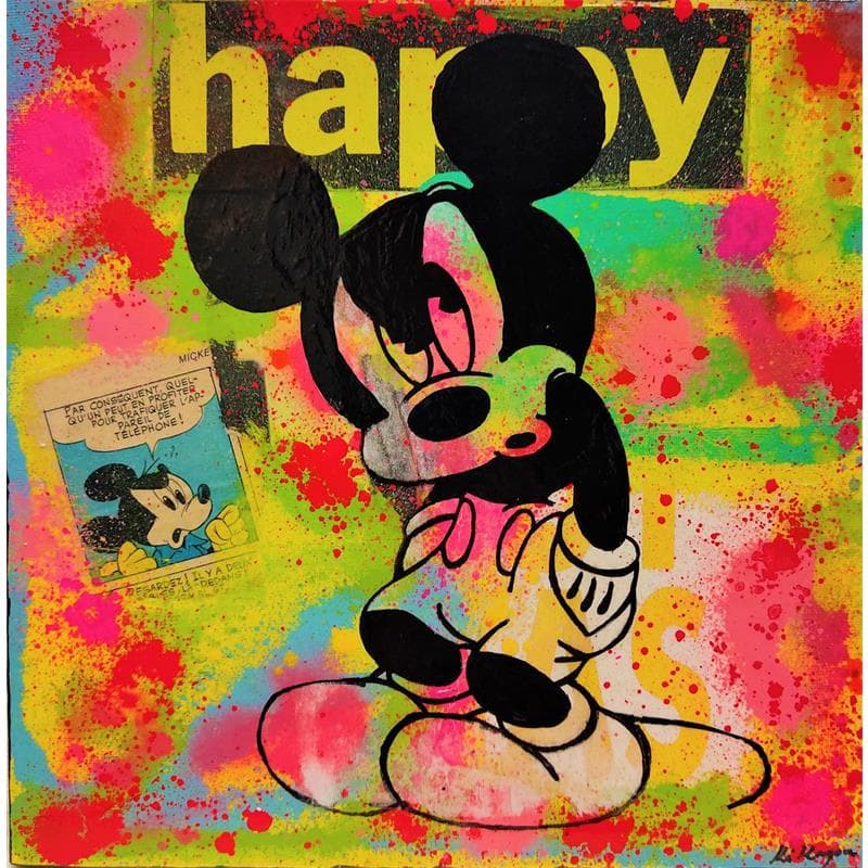 Cette oeuvre d'art contemporain unique et originale "Mickey happy" a été réalisée par l'artiste contemporain Kikayou.