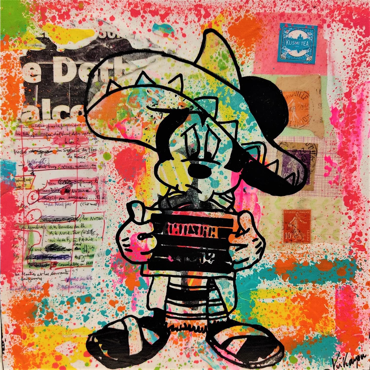 Cette oeuvre d'art contemporain unique et originale "Mickey Mexicano" a été réalisée par l'artiste contemporain Kikayou.