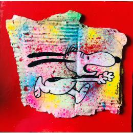 Cette oeuvre d'art contemporain unique et originale "Snoopy afraid" a été réalisée par l'artiste contemporain Kikayou.