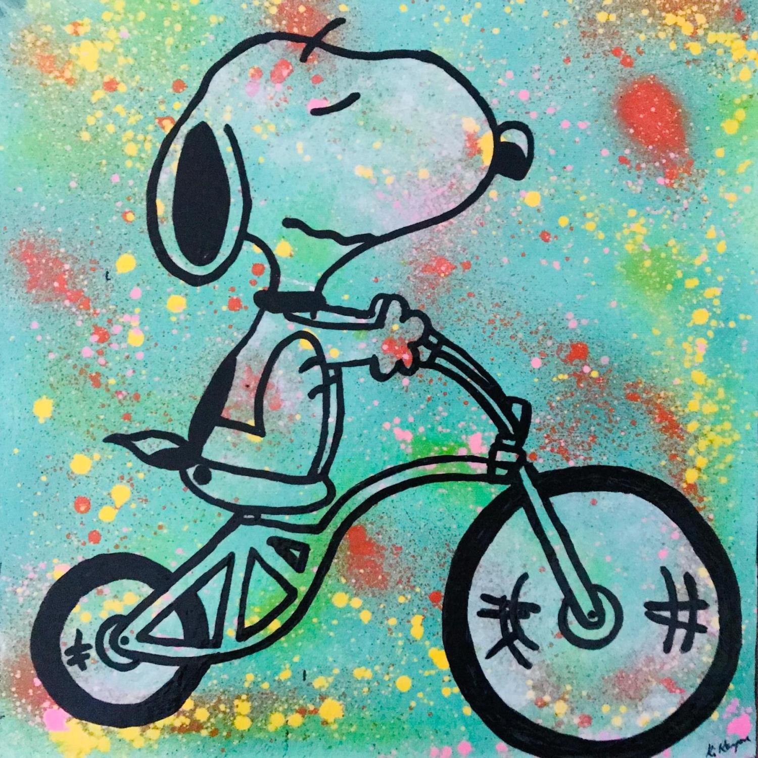 Cette oeuvre d'art contemporain unique et originale "Snoopy vélo " a été réalisée par l'artiste contemporain Kikayou.