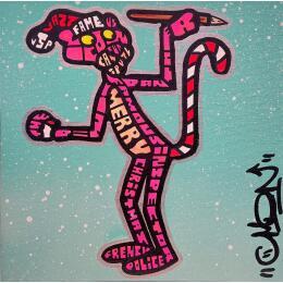 Peinture PINK PANTHER SANTA par Cmon | Tableau Pop-art Icones Pop