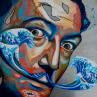 Cette oeuvre d'art contemporain unique et originale "Dali et les vagues d'Hokusai" a été réalisée par l'artiste contemporain Medeya Lemdiya.