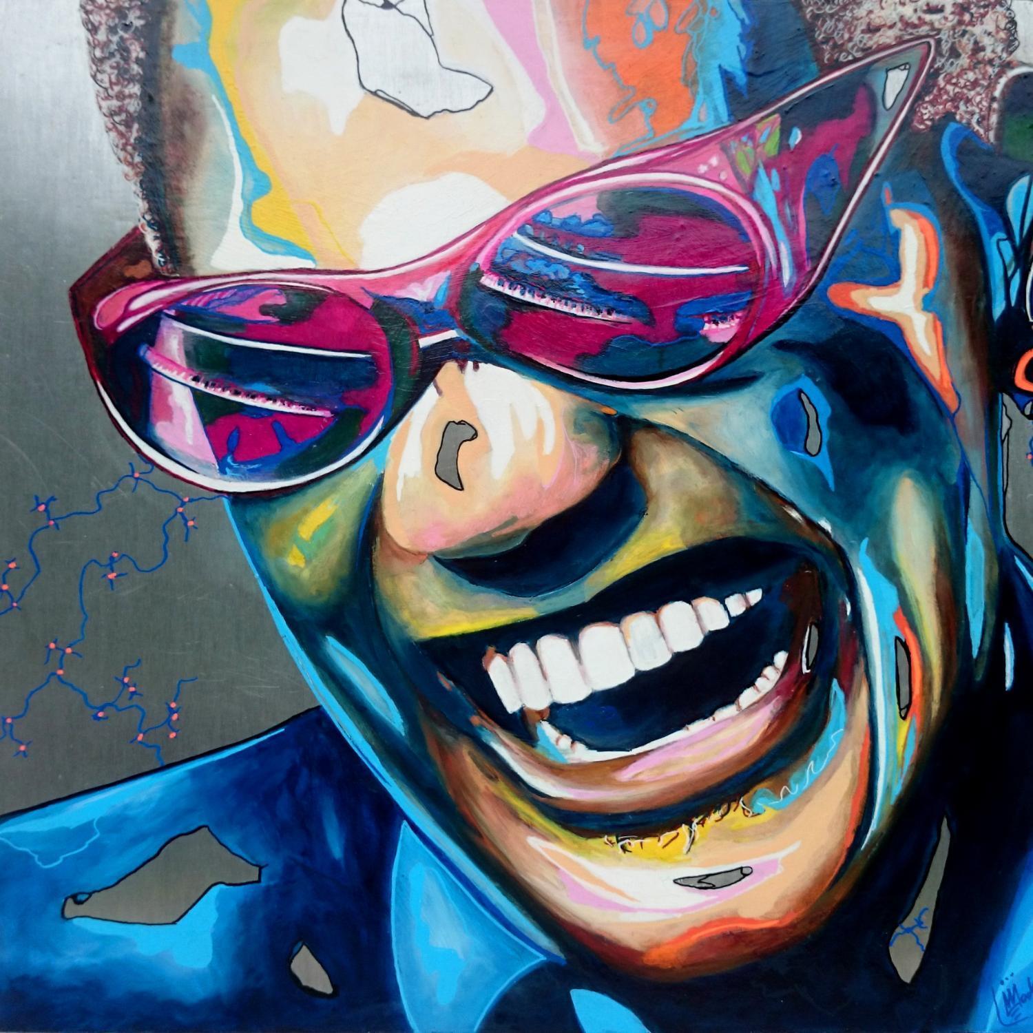 Cette oeuvre d'art contemporain unique et originale "Ray Charles" a été réalisée par l'artiste contemporain Medeya Lemdiya.