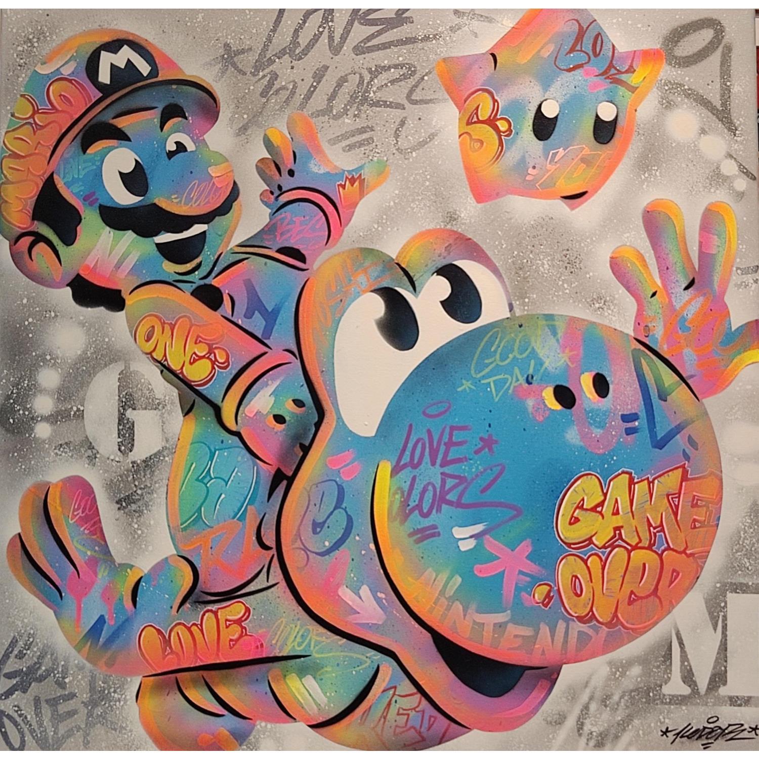 Cette oeuvre d'art contemporain unique et originale "Mario et Yoshi Star" a été réalisée par l'artiste contemporain Kedarone.