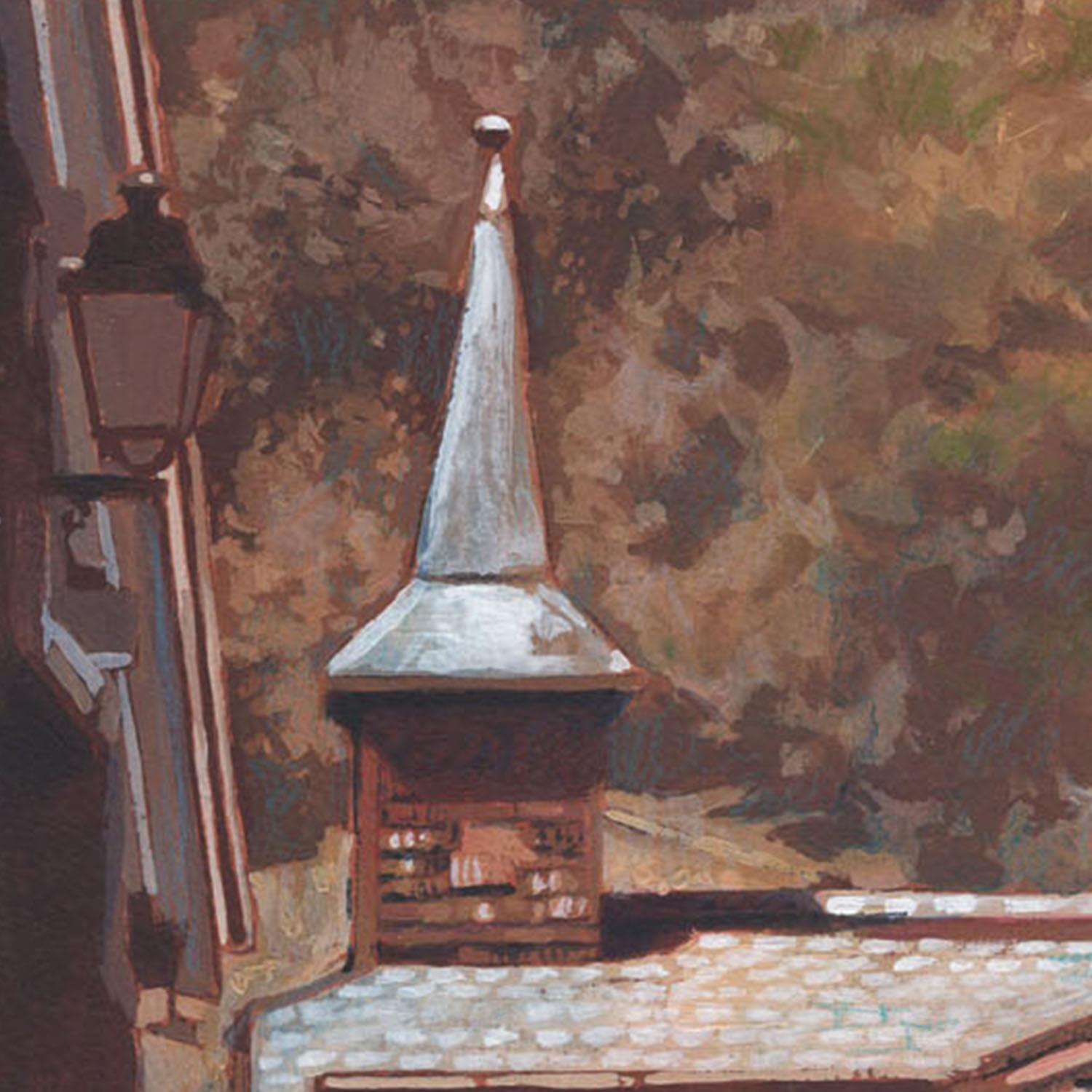 L'artiste a utilisé les techniques Acrylique, Huile pour créer cette peinture petit format sur Papier de style Réalisme sur les thèmes Architecture, Urbain.