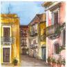 Heure dorée dans une ruelle italiennePeinture Heure dorée dans une ruelle italienne par Sorokopud Angelina | Tableau Réalisme Urbain Aquarelle
