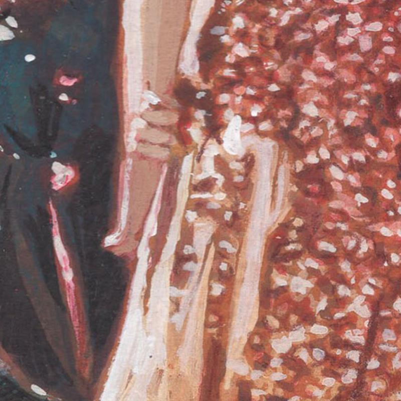 L'artiste a utilisé les techniques Huile, Acrylique pour créer cette peinture petit format sur Papier de style Réalisme sur les thèmes Scènes de vie, Nature.