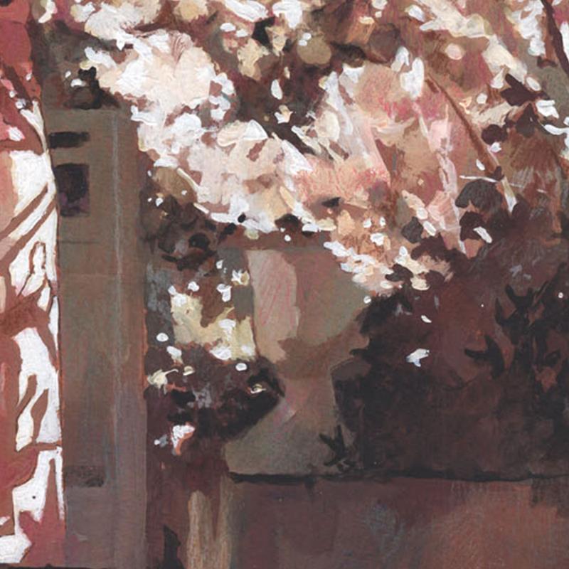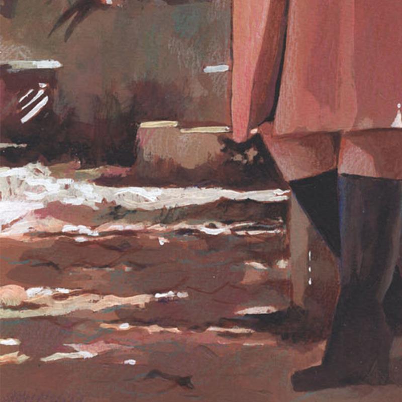 L'artiste a utilisé les techniques Huile, Acrylique pour créer cette peinture petit format sur Papier de style Réalisme sur les thèmes Scènes de vie, Mode, Nature.