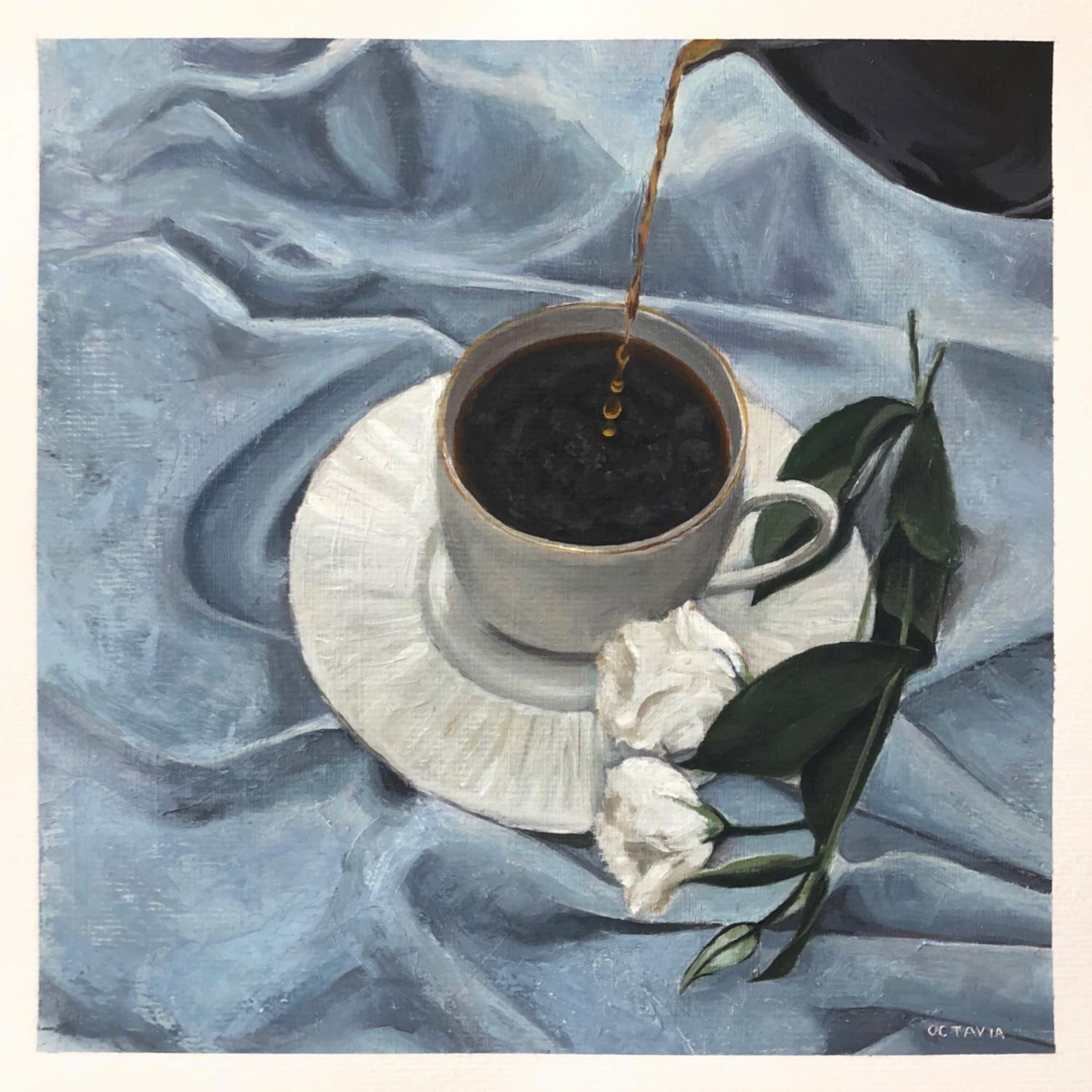 Peinture Tasse de thé  par Sellier Octavia | Tableau Réalisme Huile