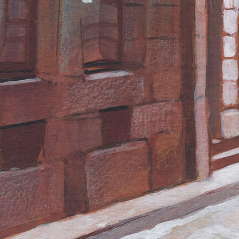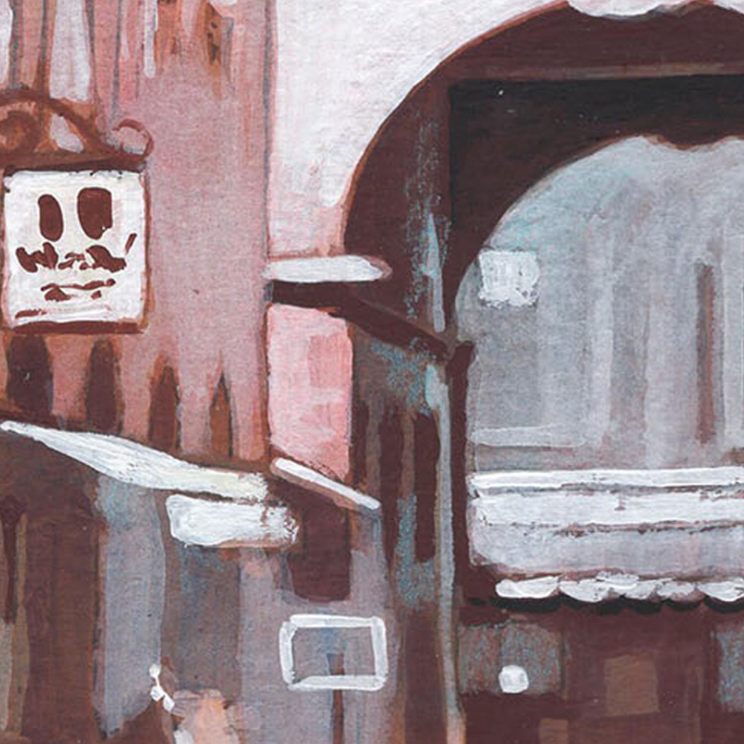 L'artiste a utilisé les techniques Huile, Acrylique pour créer cette peinture petit format sur Papier de style Réalisme sur les thèmes Urbain, Architecture.