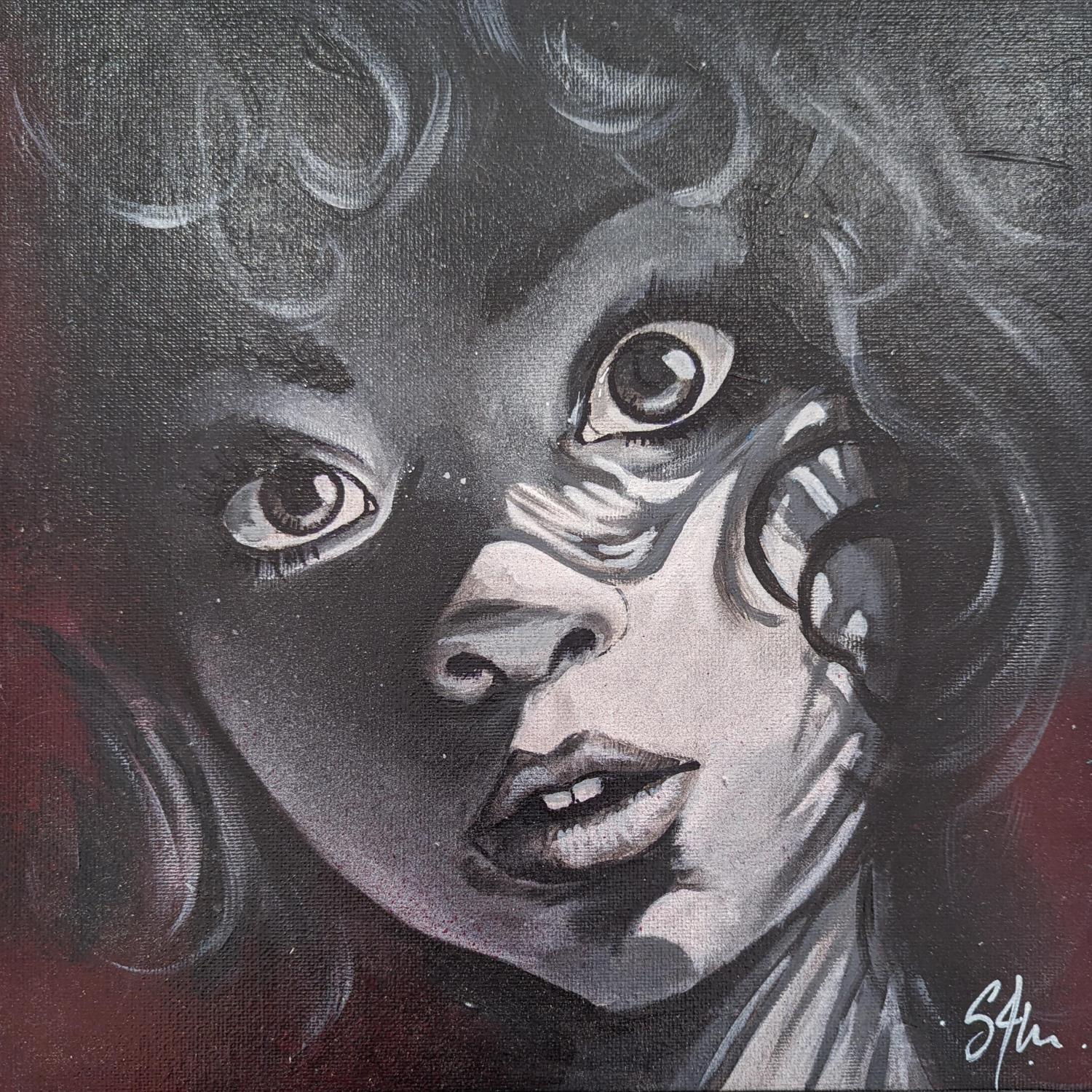 L'artiste a utilisé la technique Acrylique pour créer cette peinture petit format sur Toile de style Street Art sur les thèmes Noir & blanc, Portraits.