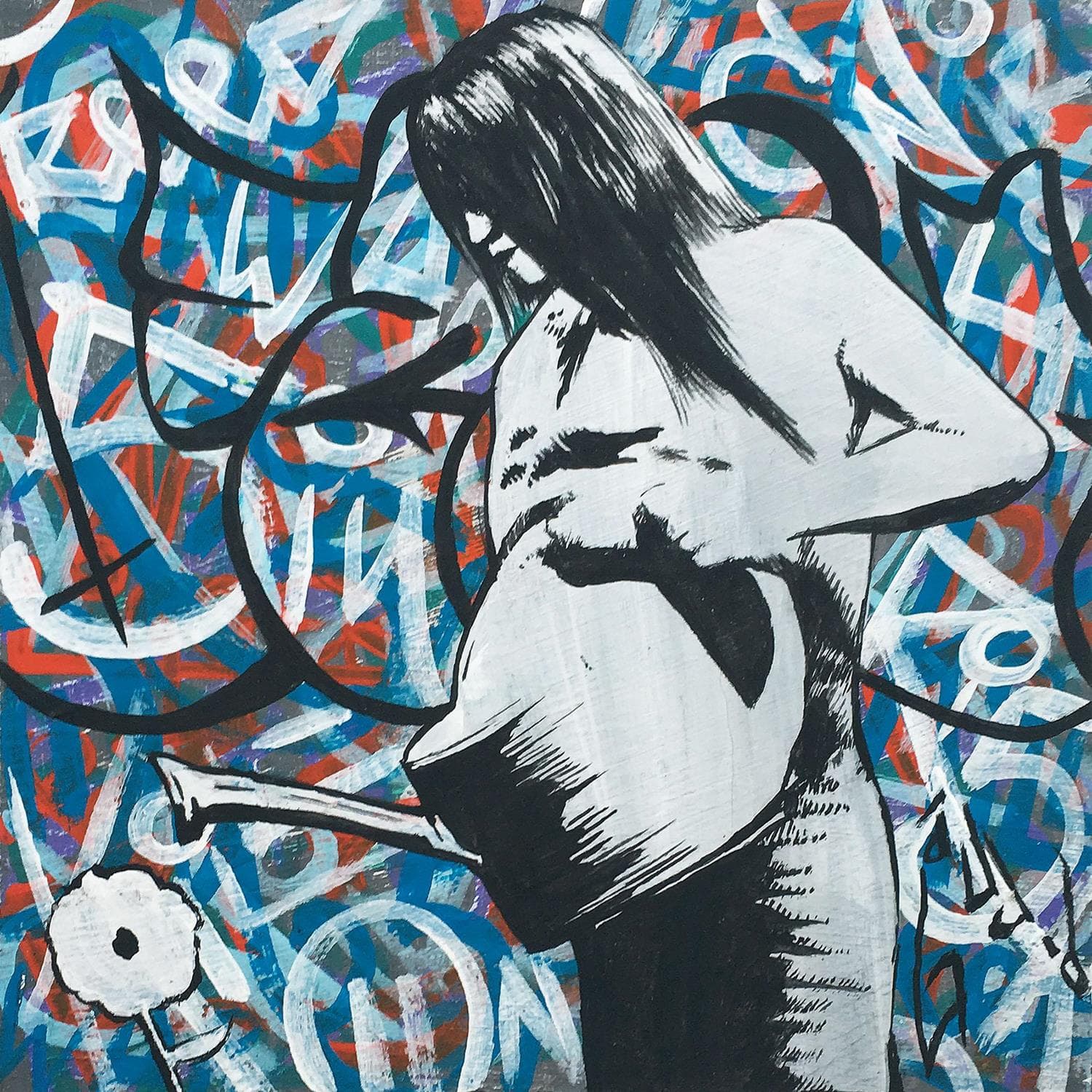 L'artiste a utilisé la technique Acrylique pour créer cette peinture petit format sur bois de style Street Art sur le thème scènes de vie.