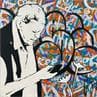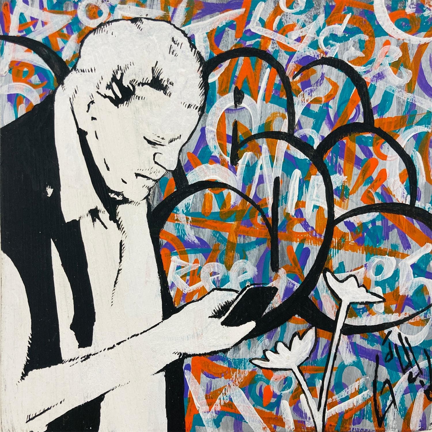 L'artiste a utilisé les techniques Acrylique, Graffiti pour créer cette peinture petit format sur toile de style Street Art sur le thème scènes de vie.