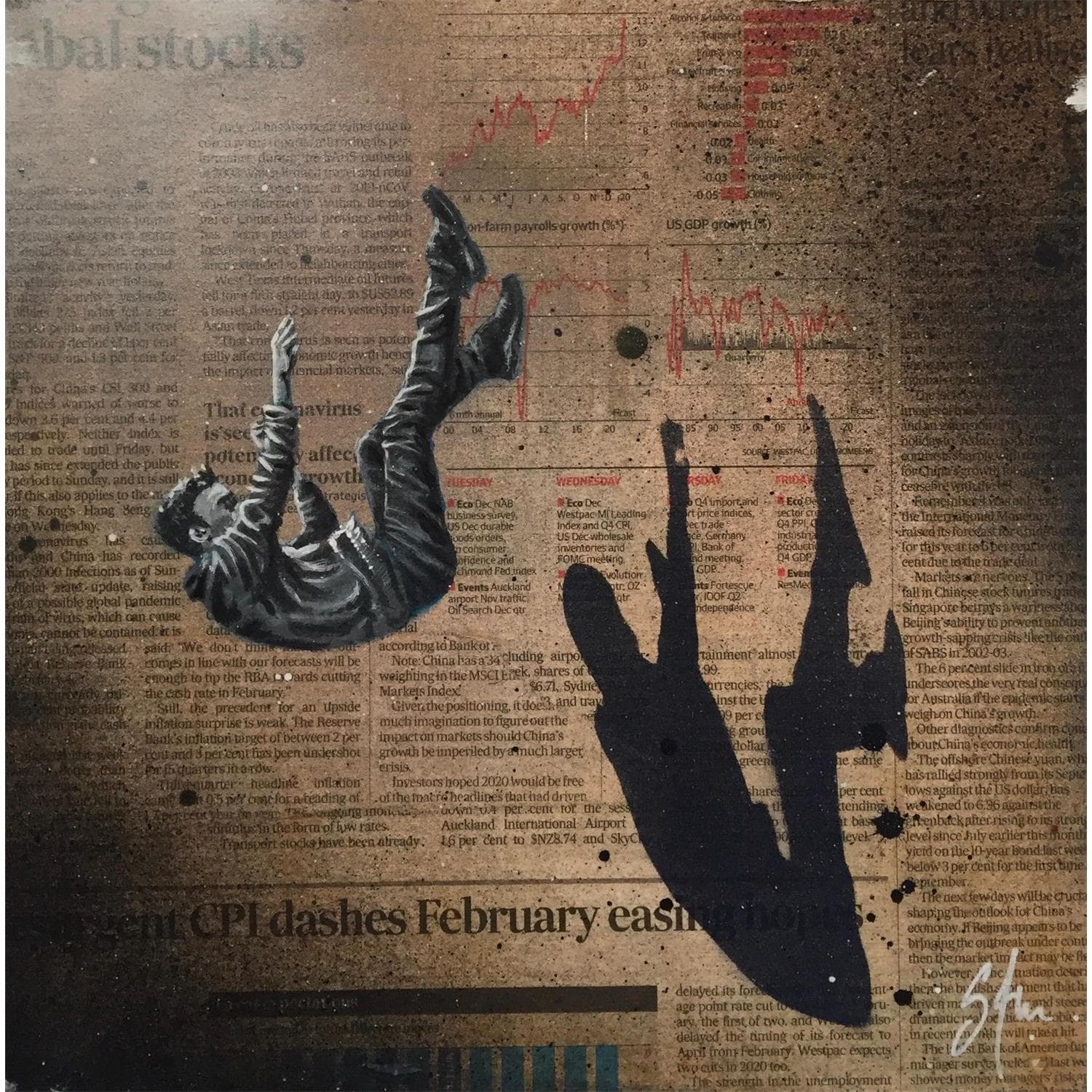 Peinture La chute II par S4m | Tableau Street Art Scènes de vie Acrylique