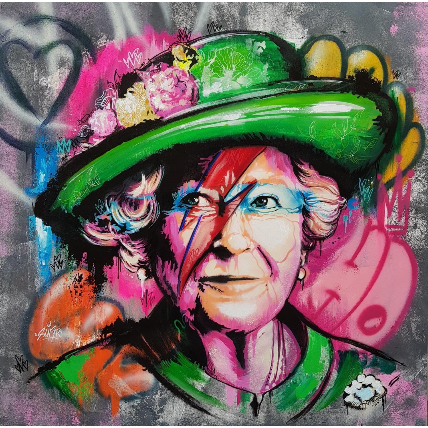 Cette oeuvre d'art contemporain unique et originale "Queen Bowie Dreamer" a été réalisée par l'artiste contemporain Sufyr.