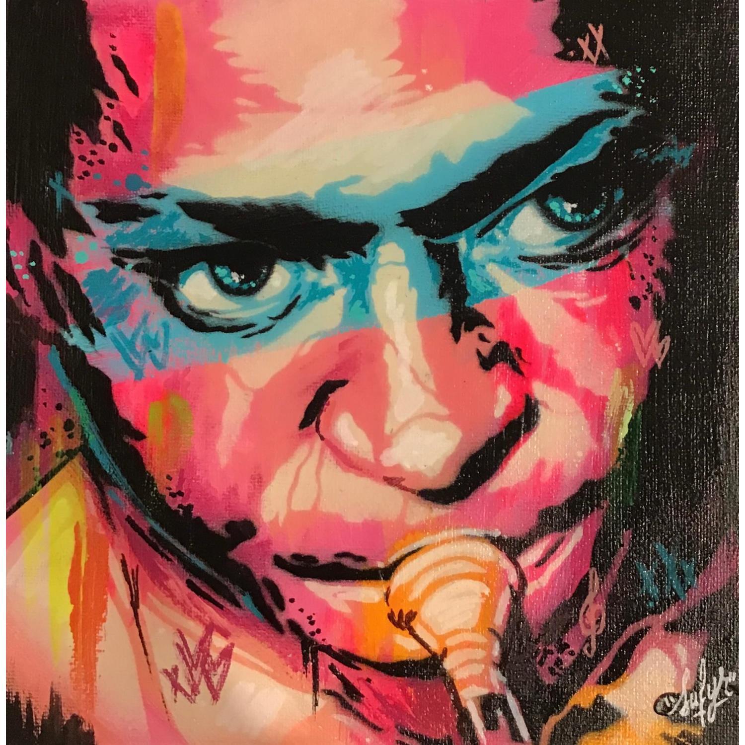 L'artiste a utilisé les techniques Graffiti, Posca pour créer cette peinture petit format sur toile de style Street Art.