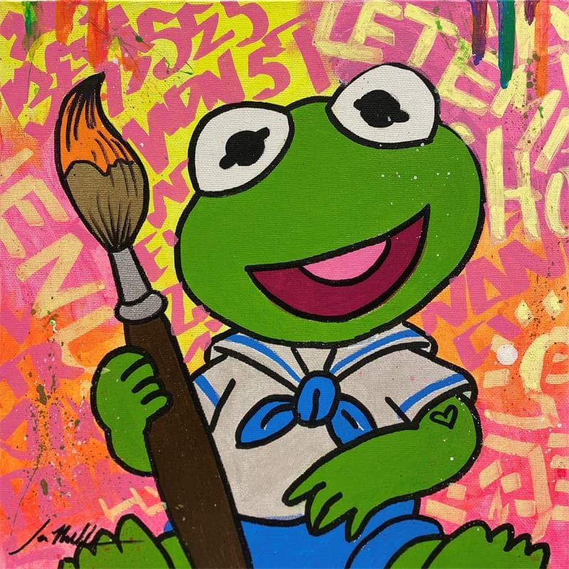 Cette oeuvre d'art contemporain unique et originale "Baby Kermit" a été réalisée par l'artiste contemporain Miller Jen . L'artiste a utilisé différentes techniques pour créer cette peinture petit format sur toile de style Street Art sur le thème icones Pop.