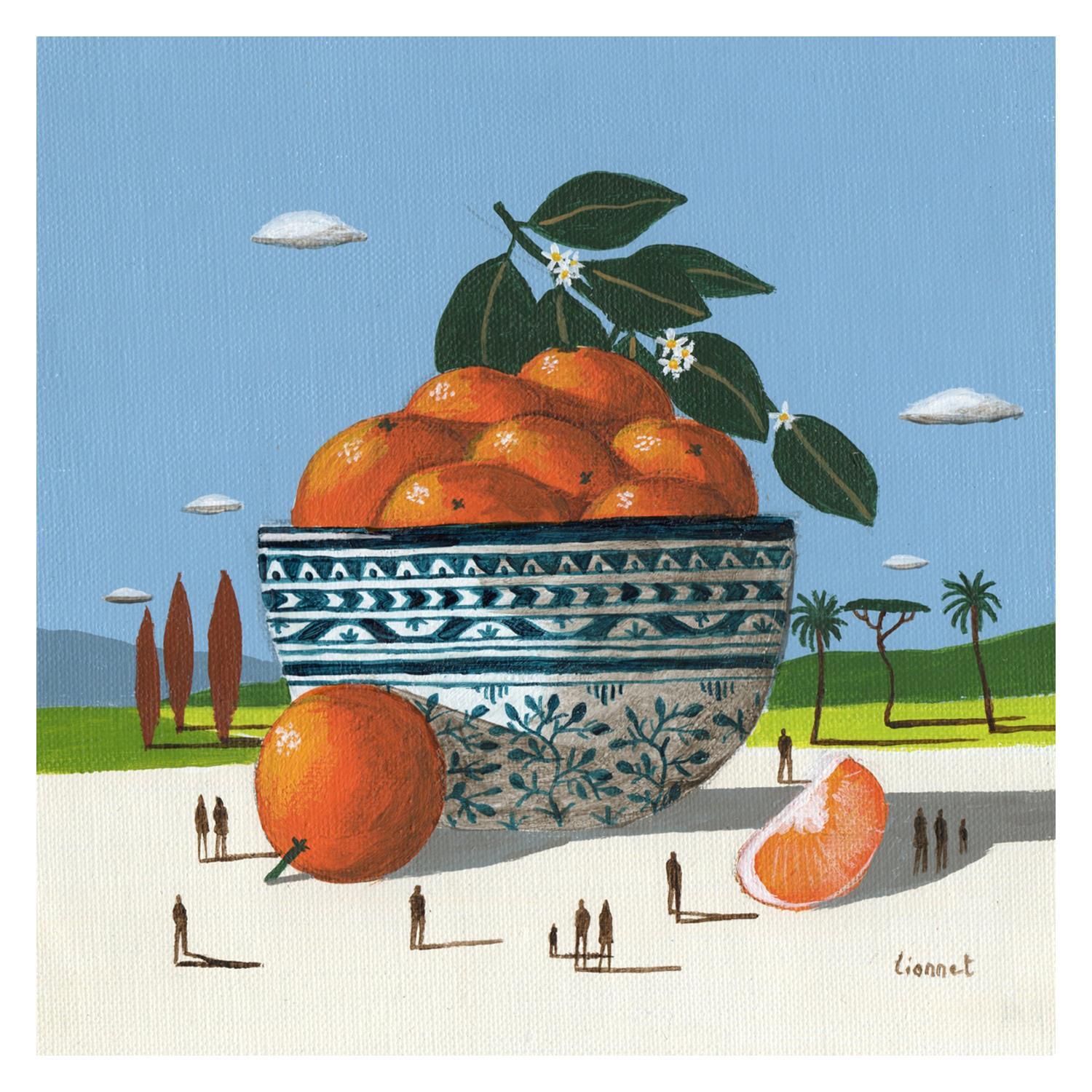 Peinture coupe d'oranges par Lionnet Pascal | Tableau Surréalisme Paysages Scènes de vie Natures mortes Acrylique