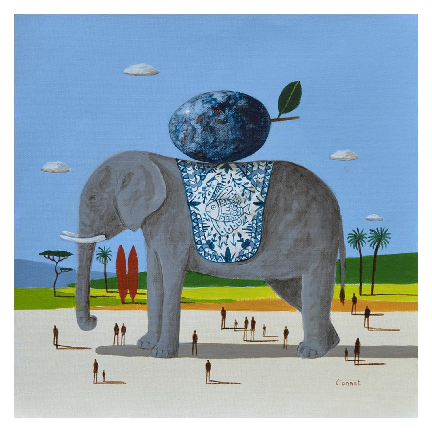 Peinture Eléphant à la prune par Lionnet Pascal | Tableau Surréalisme Paysages Animaux Natures mortes Acrylique