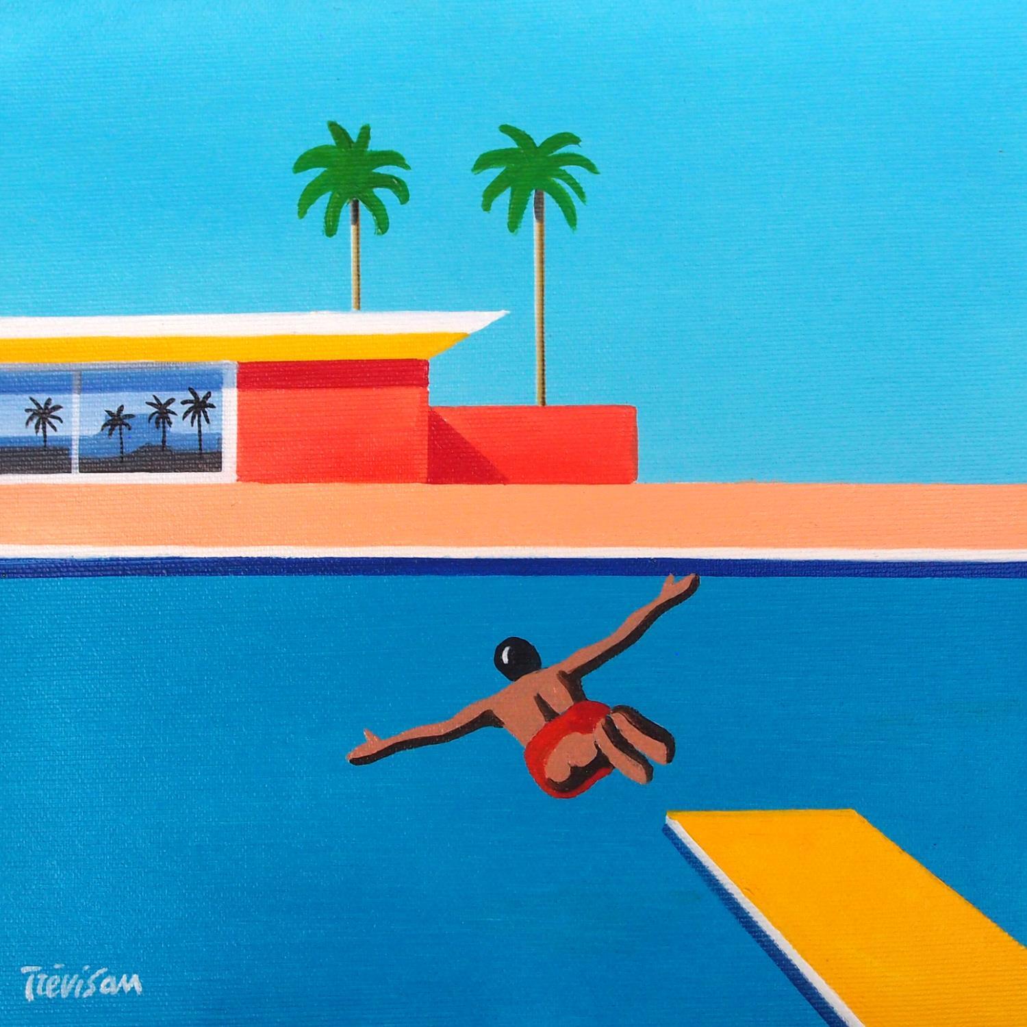 Small jumpPeinture Small jump par Trevisan Carlo | Tableau Surréalisme Sport Architecture Minimaliste Huile