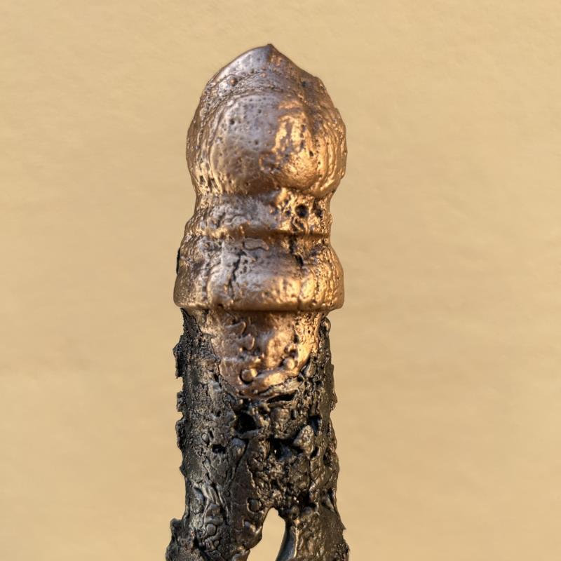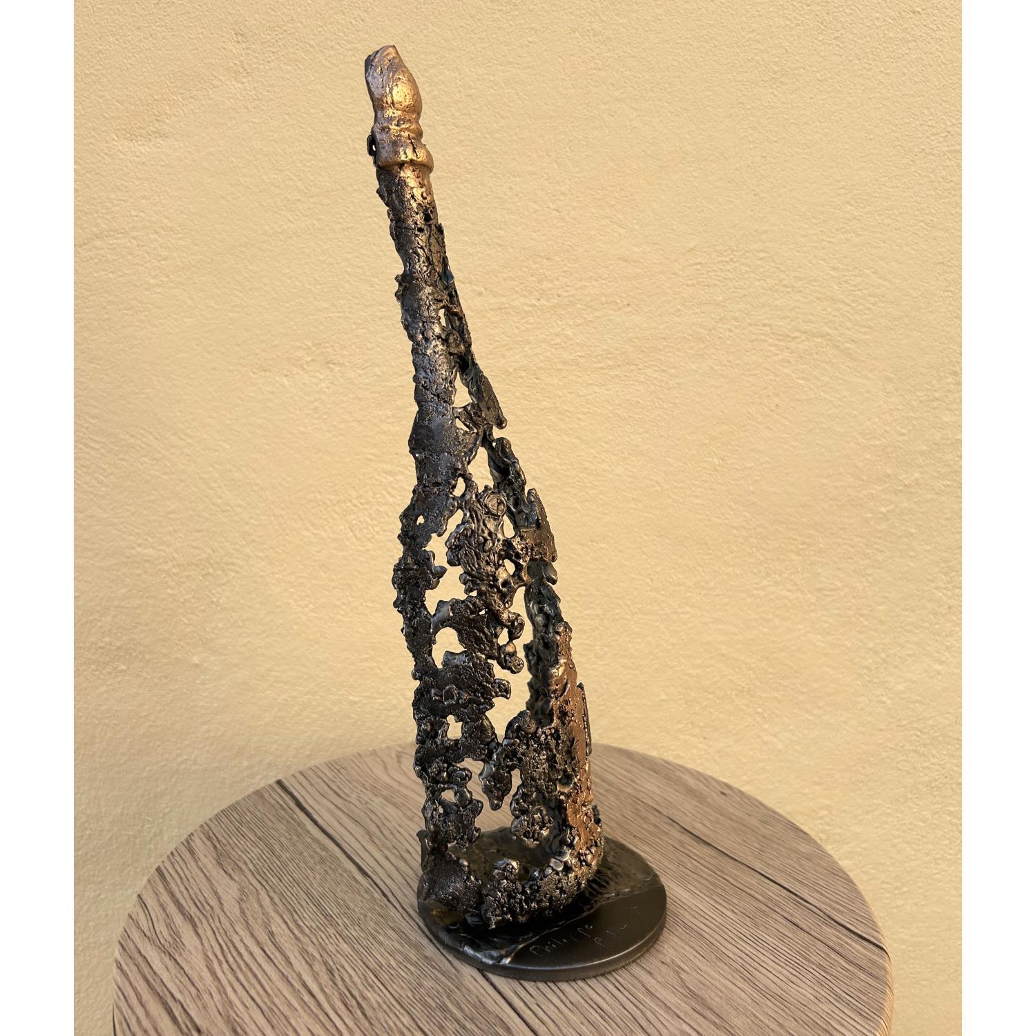 La dentelle de métal est obtenue par dripping, en faisant fondre les métaux au goutte à goutte, ce qui garantit que chaque sculpture est unique.