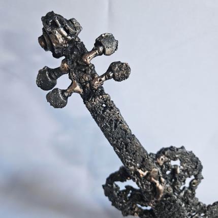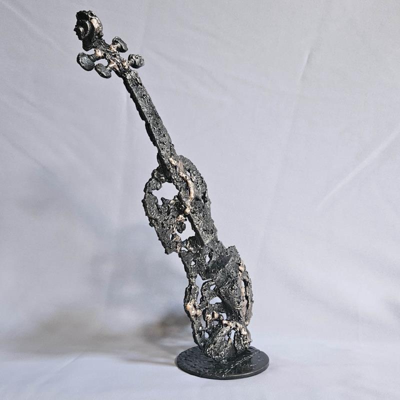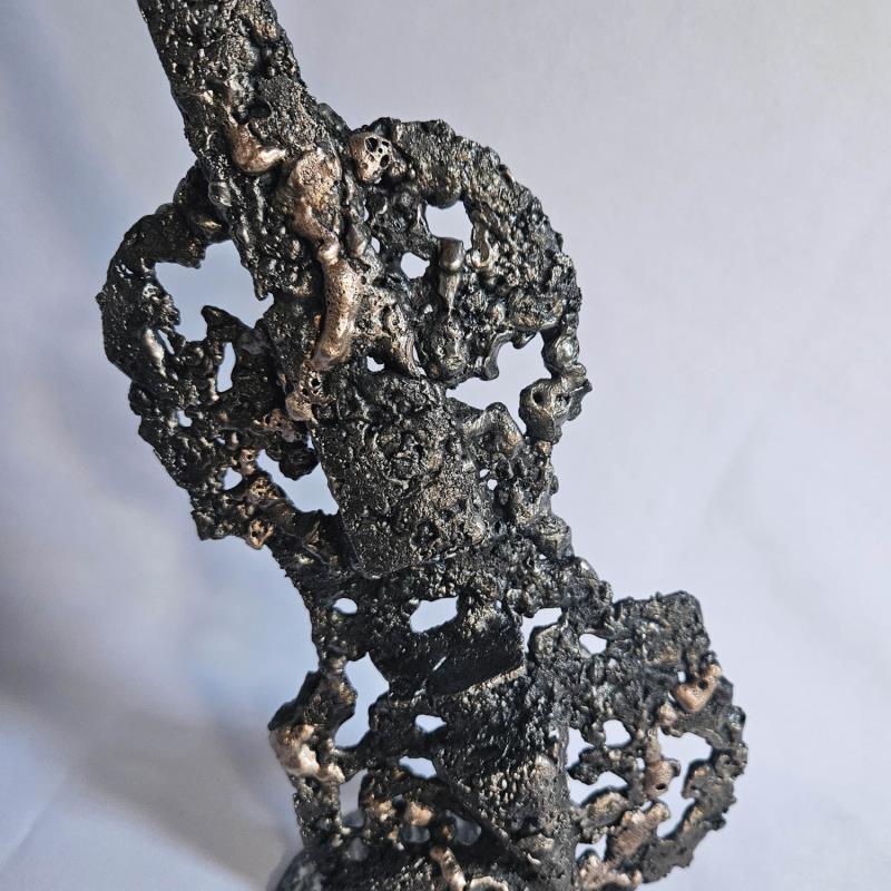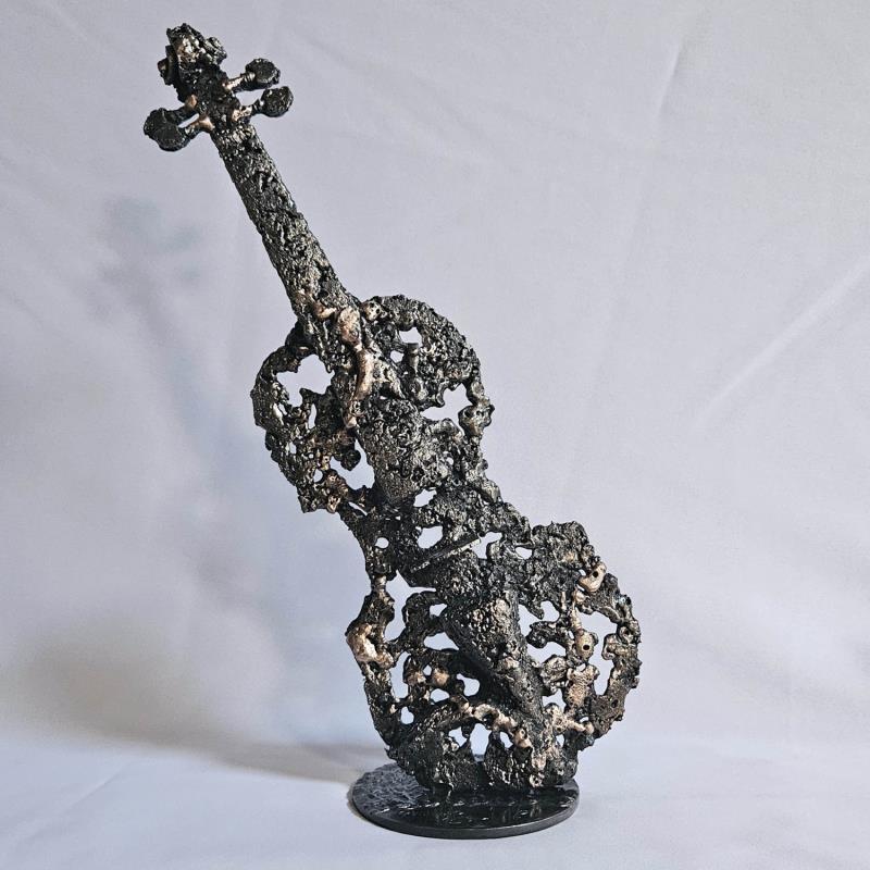 Cette sculpture représente un violon. elle est réalisée en dentelle de métal : acier et bronze