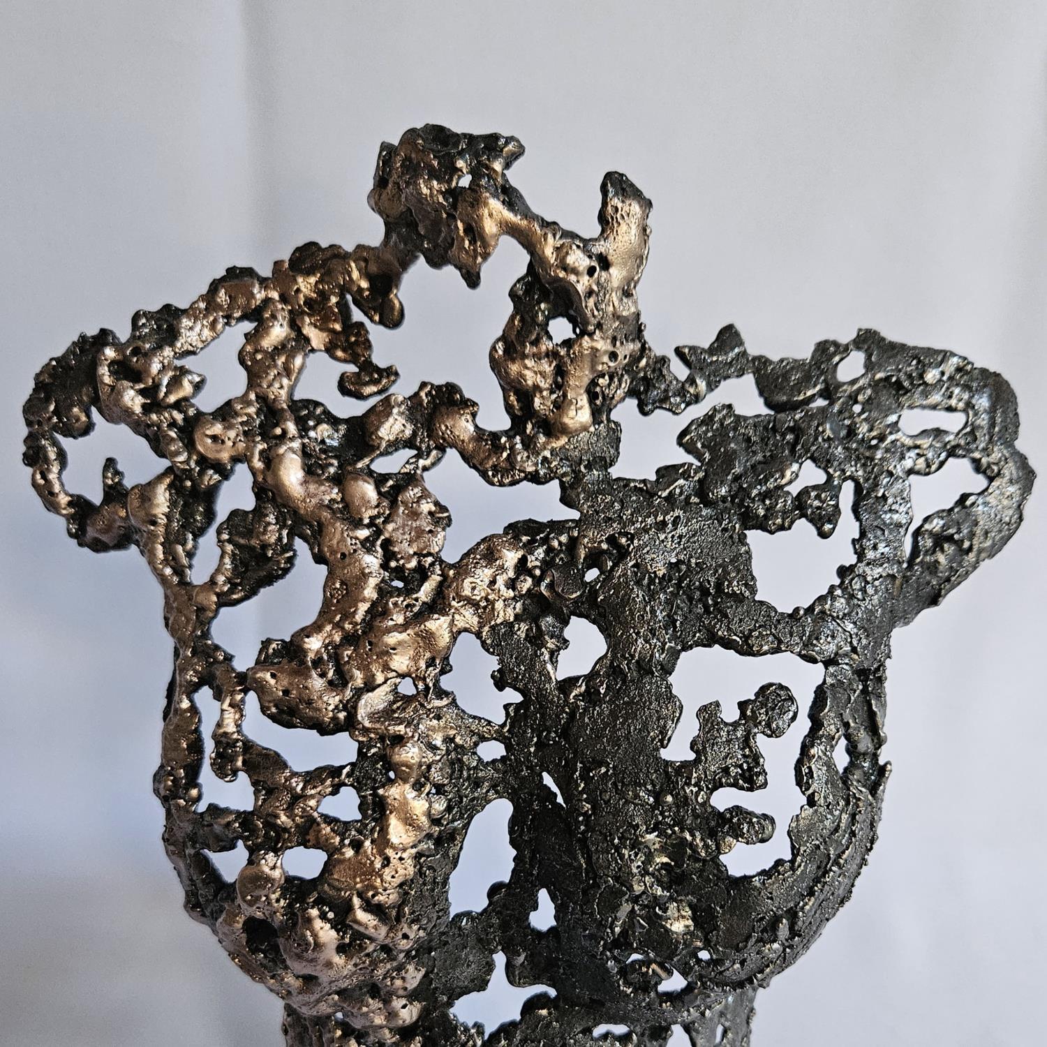 L'artiste a utilisé les techniques Métal, Bronze pour créer cette sculpture moyen format en Métal de style Figuratif sur les thèmes Scènes de vie, Mode.