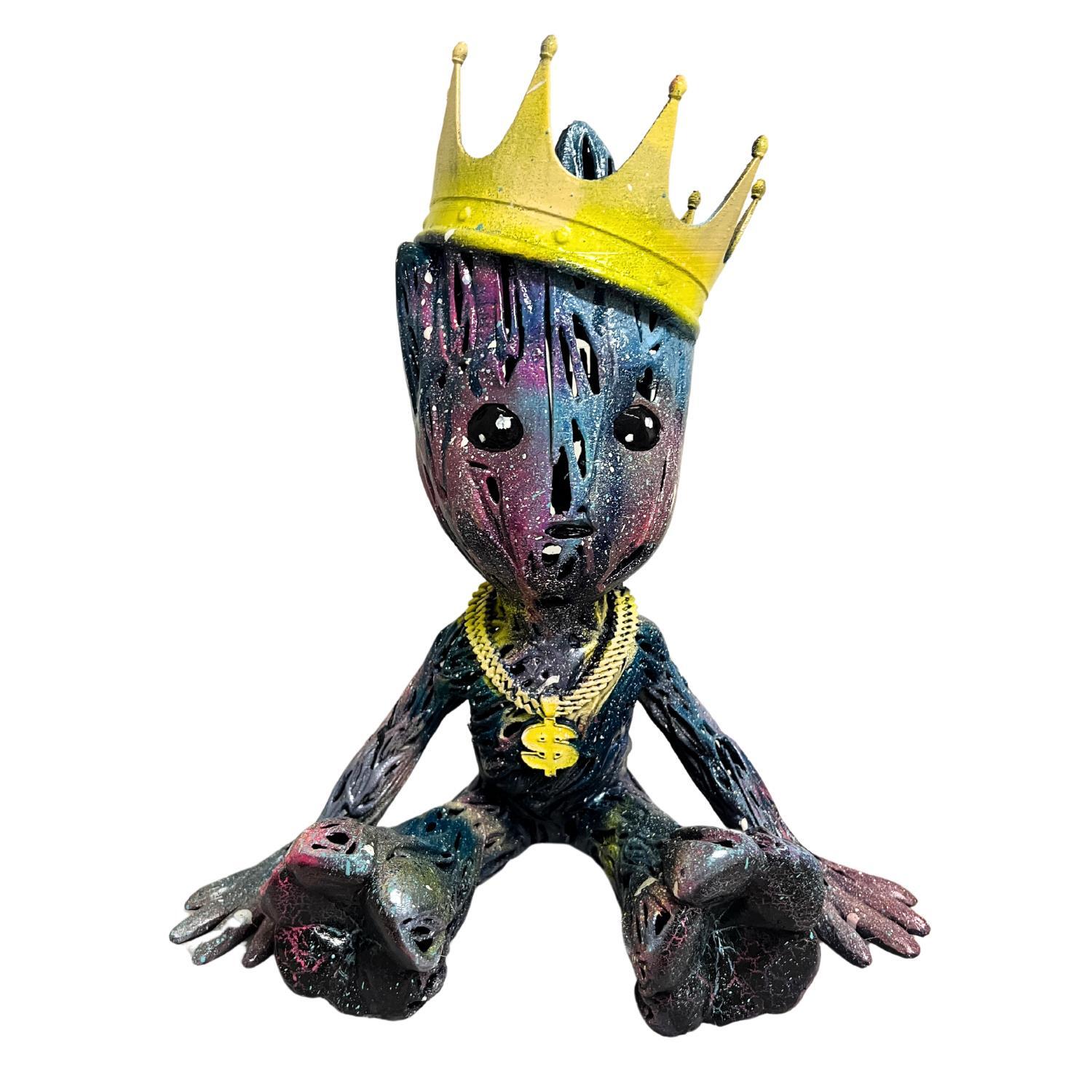 Cette oeuvre d'art contemporain unique et originale "FAIRY GROOT KING OF STREET" a été réalisée par l'artiste contemporain Mikhel Julien.