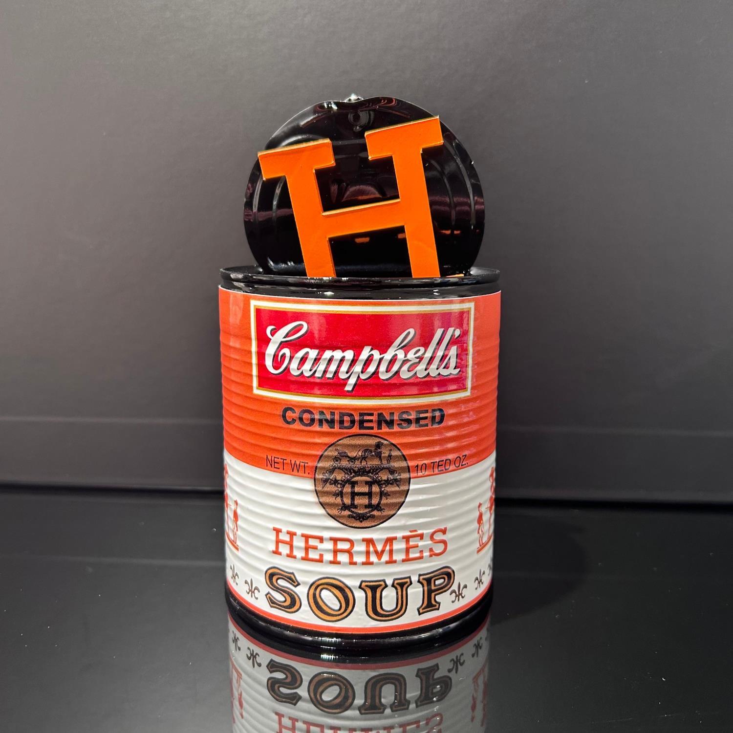Cette oeuvre d'art contemporain unique et originale "CAMPBELL HERMES SOUP" a été réalisée par l'artiste contemporain TED. L'artiste a utilisé différentes techniques pour créer cette sculpture moyen format de style Pop-art sur le thème Icones Pop.