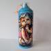 L'artiste a utilisé les techniques Posca, Graffiti et collage pour créer cette sculpture petit format sur aérosol de style Street Art.
