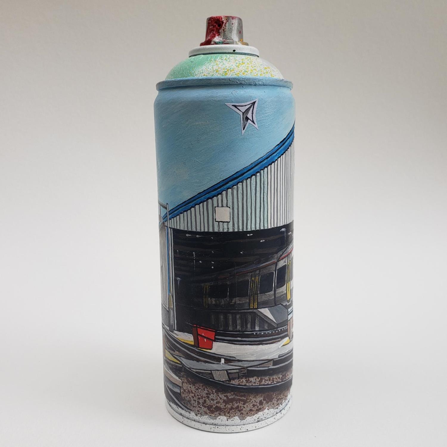 L'artiste a utilisé les techniques Graffiti, Métal, Acrylique pour créer cette sculpture petit format en Métal de style Street Art sur les thèmes Paysages, Urbain, Architecture.