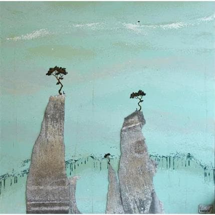 Utilisant dans ses travaux la matière brute, le sable, la terre de sienne, la feuille de zinc oxydé, d’or, ou de plomb, mais aussi les aplats de peinture à l’huile et acrylique, l’artiste invente pour l’homme un espace fait de points, de lignes pures et de formes géométriques, dans lequel il va devoir trouver sa place. Sa pratique est avant tout un regard sur l’humain, chaque petite silhouette pouvant représenter dans l’imaginaire du peintre un symbole, culturel, géographique, mythologique, historique. Qu’il place l’homme dans l’univers marin de ses origines malouines, dans un paysage montagneux ou urbain, la réflexion du peintre tend vers l’universalité de la place de l’homme dans son environnement.