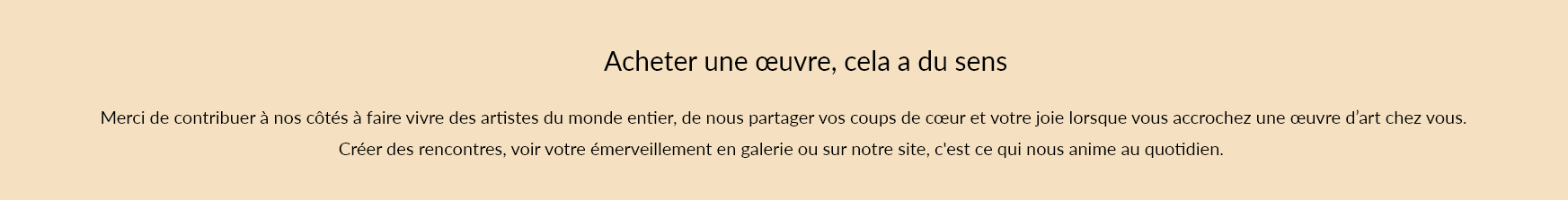 Ces prix sont définis pour faire vivre les artistes, les rémunérer à hauteur de leur travail ainsi que pour couvrir nos coûts : loyer des galeries, salaires des galeristes et services supports, transport, expédition, communication.
