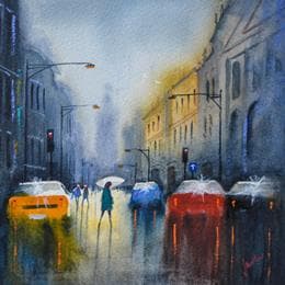 New YorkPeinture New York par Min Jan | Tableau Figuratif Urbain Aquarelle