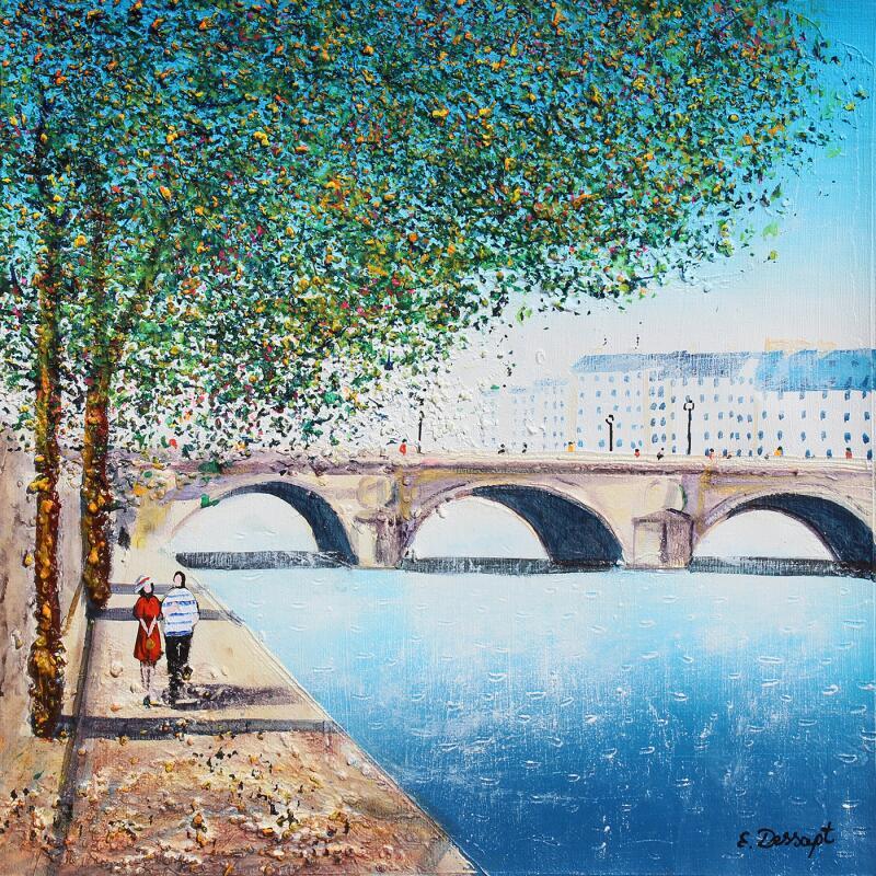 Cette oeuvre d'art contemporain unique et originale "Main dans la main à Paris" a été réalisée par l'artiste contemporain Dessapt Elika.