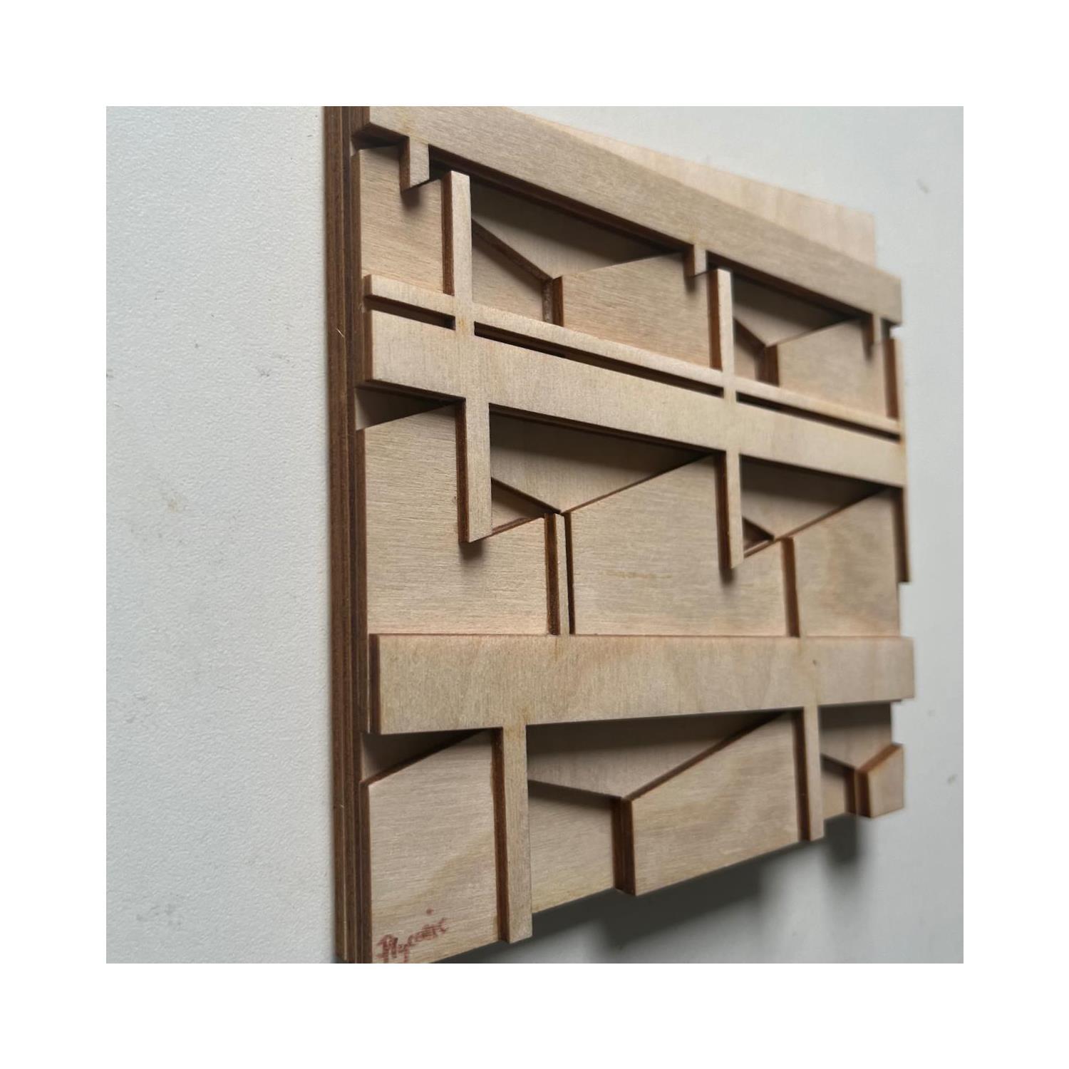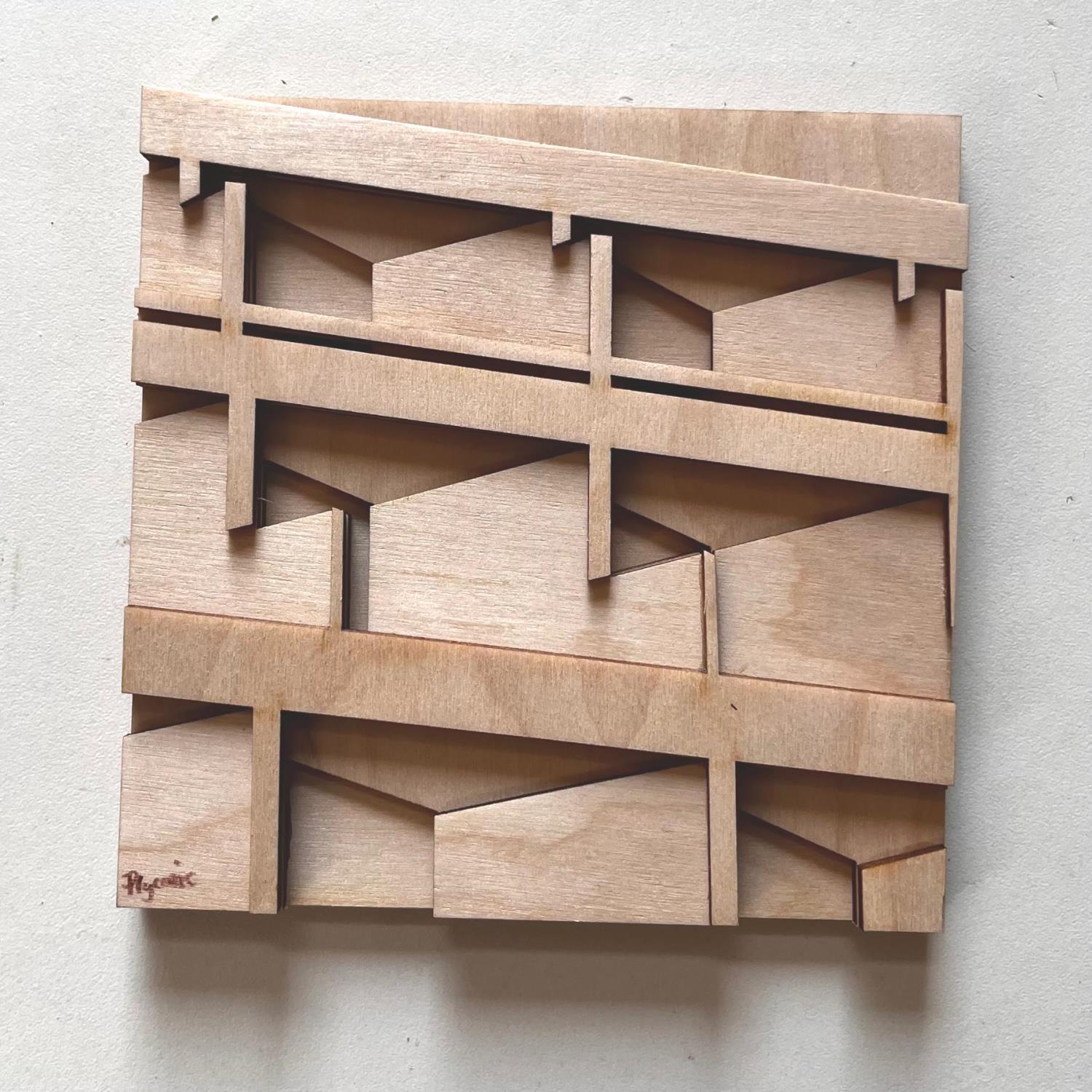 Helen, connue sous le pseudonyme Plyconic, est une artiste basée à Londres et possède une formation en design de mobilier. Sa passion pour l'art a éclos après une visite captivante au Centre Barbican de Londres, où l'interaction de la lumière avec l'architecture l'a profondément inspirée. Ce moment décisif l'a conduite à utiliser le contreplaqué, matériau de ses créations, pour capturer et recréer les jeux de lumière observés.