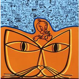 Le chat et l'oiseauPeinture Le chat et l'oiseau par Belladone | Tableau Pop-art Icones Pop Acrylique Posca